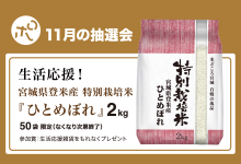 (10月24日更新) 平日 1 土 2 日 3 祝 8 土 9 日 15 土 16 日 22土 23祝 24振 29土 30日 11月の抽選会「生活応援!宮城の新米!」 ● ● ● ● ● ● ● ● ● ● ● ● […]
