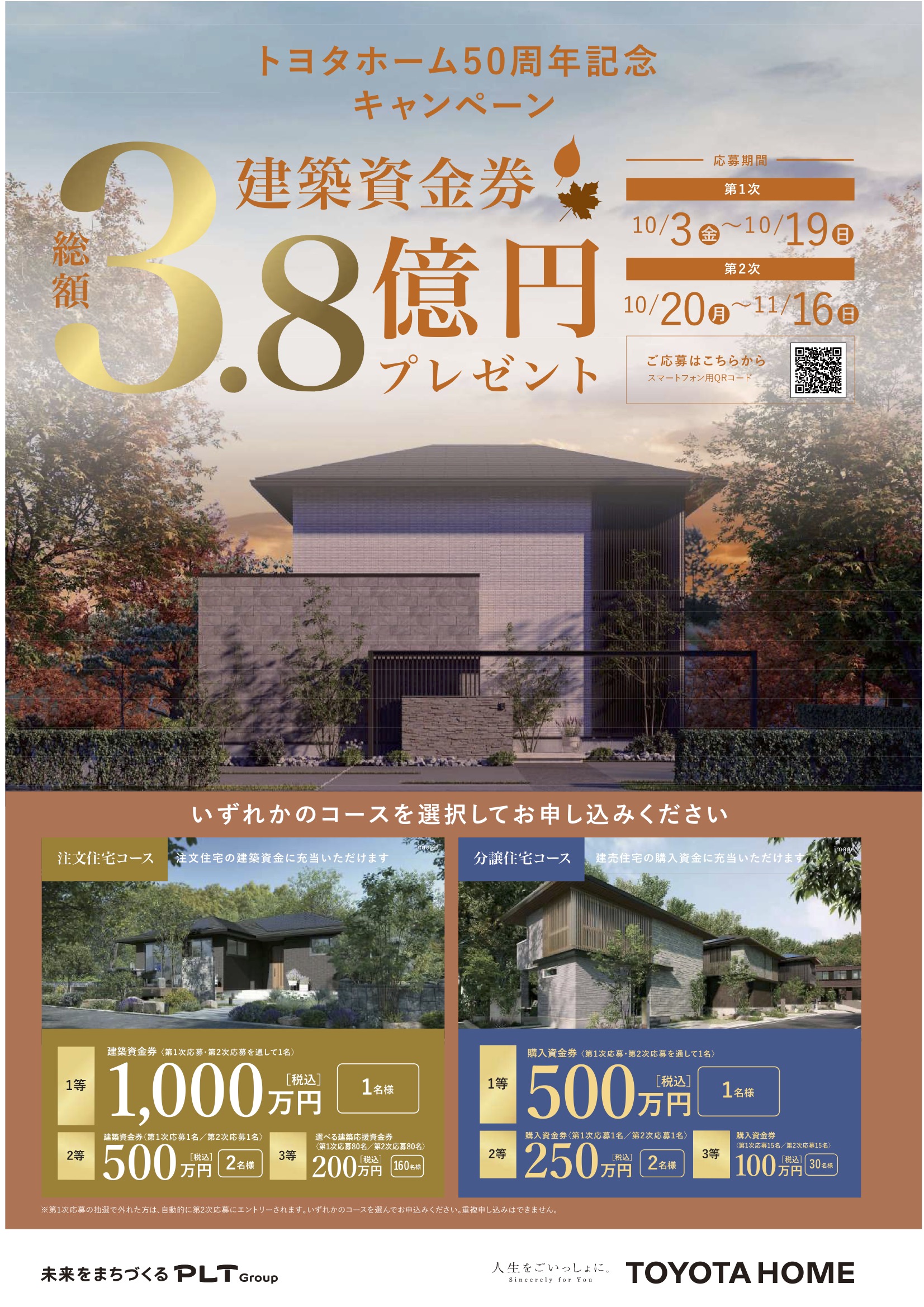 トヨタホーム50周年記念!【秋の総額3.8億円 建築資金券キャンペーン】