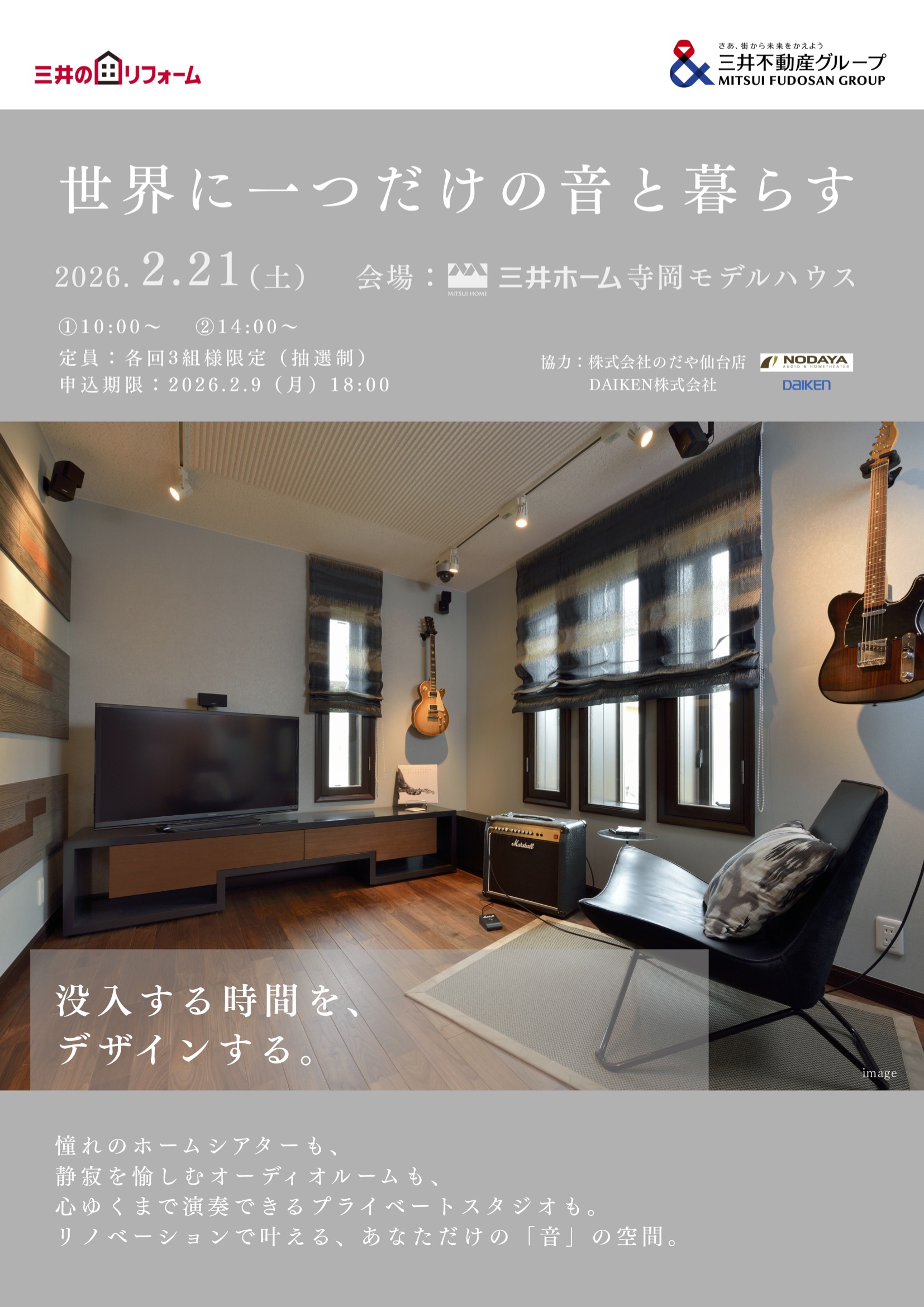 音響のスペシャリスト「のだや」と建材メーカー「DAIKEN」の協力を得て、プロが奏でる上質な音響空間のつくり方を詳しく解説いたします 。
